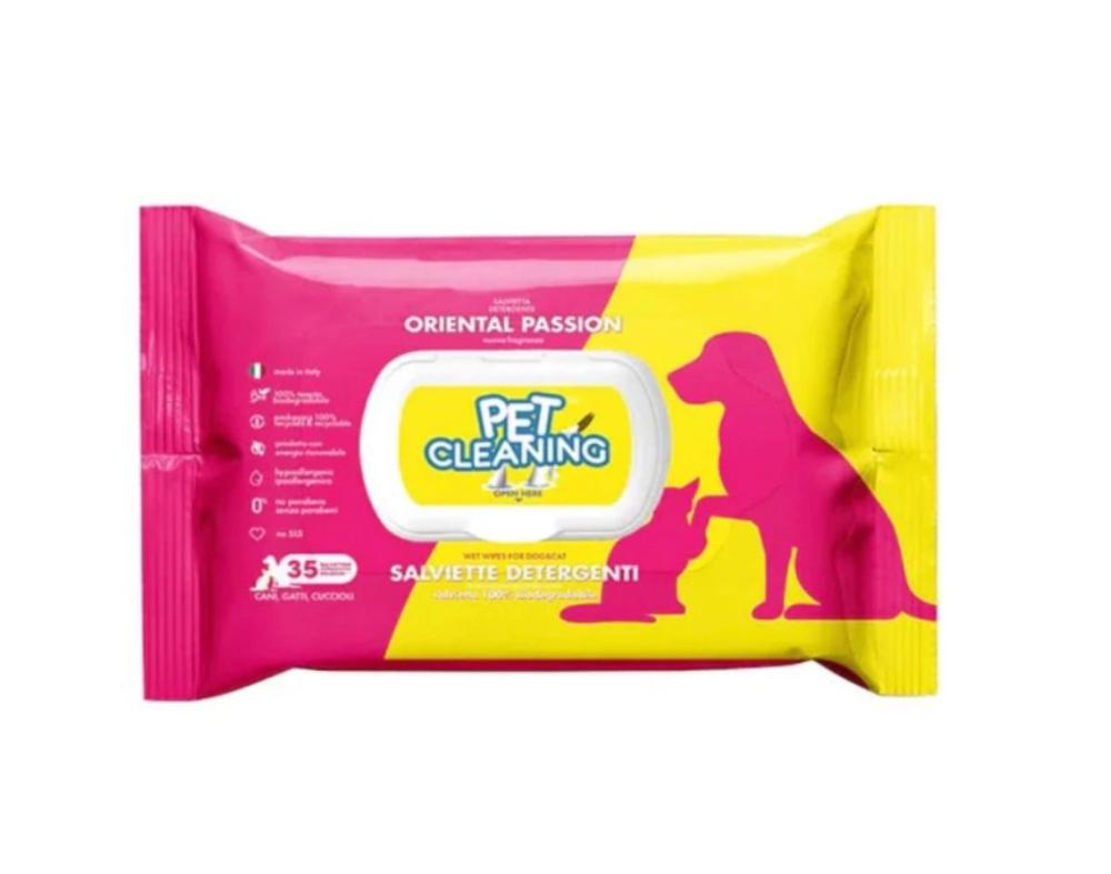 مناديل مبللة لتنظيف الحيوانات الأليفة برائحة الشغف الشرقي للكلاب والقطط، 35 قطعة